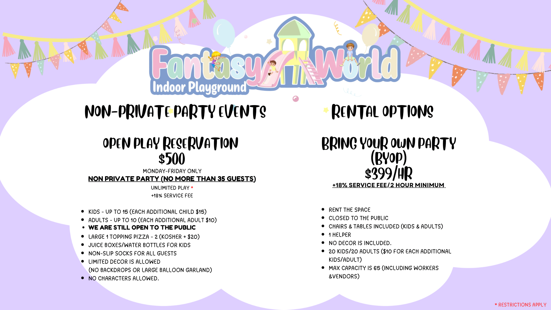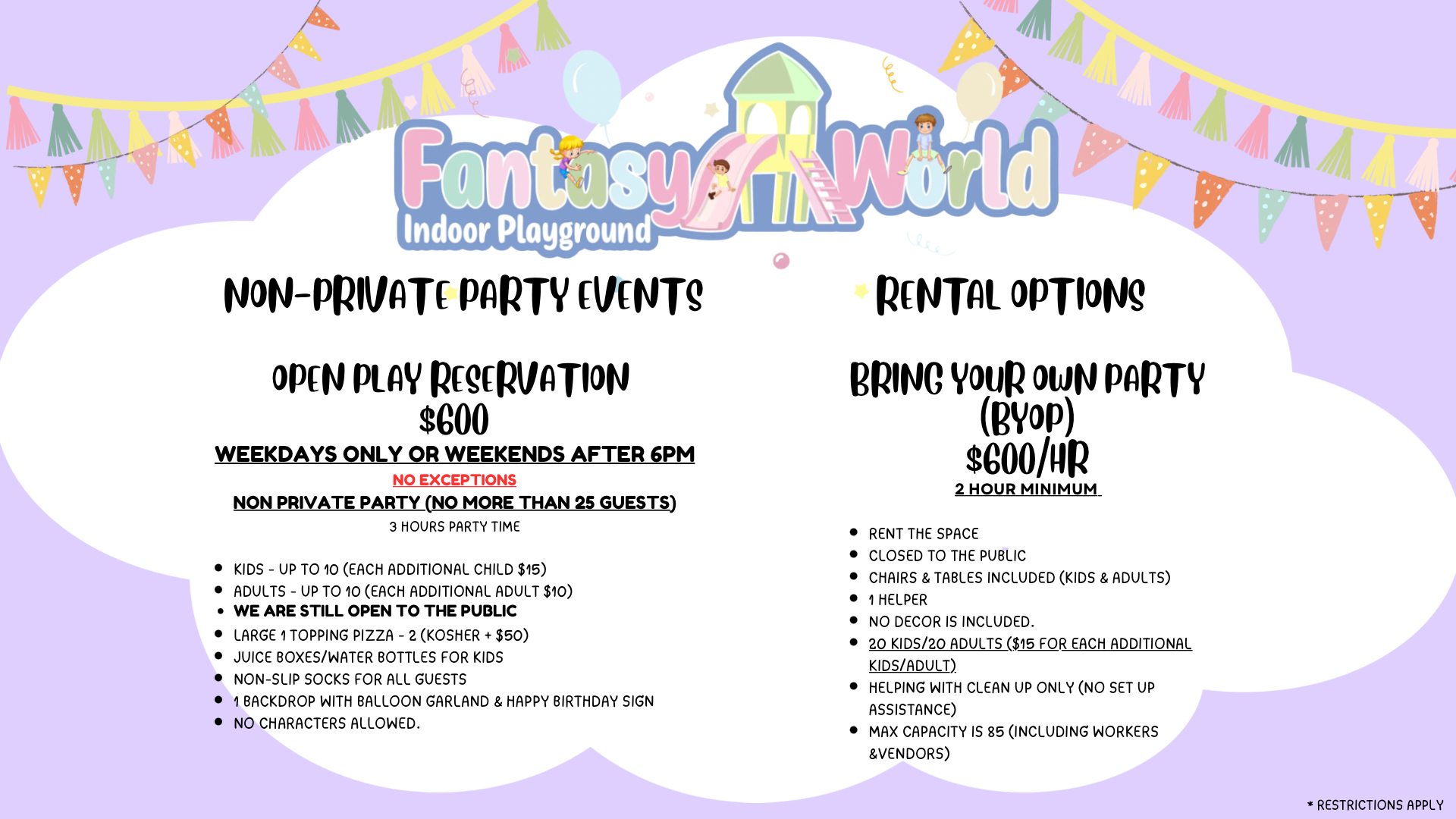 So whether you’re looking for an exciting day out or planning a memorable birthday celebration, Fantasy World Indoor Playground has got you covered. Come join us and let your child’s imagination run wild! Book your visit at our family fun center today!